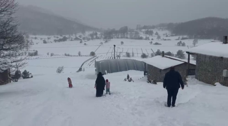 Bursa'nın İznik ilçesinde yüksek kesimlerde kar kalınlığı 60 santimetreye ulaştı. Dağlara kurulan ve tatilcileri ağırlayan hobi evleri de yoğun karla birlikte dolup taşıyor.