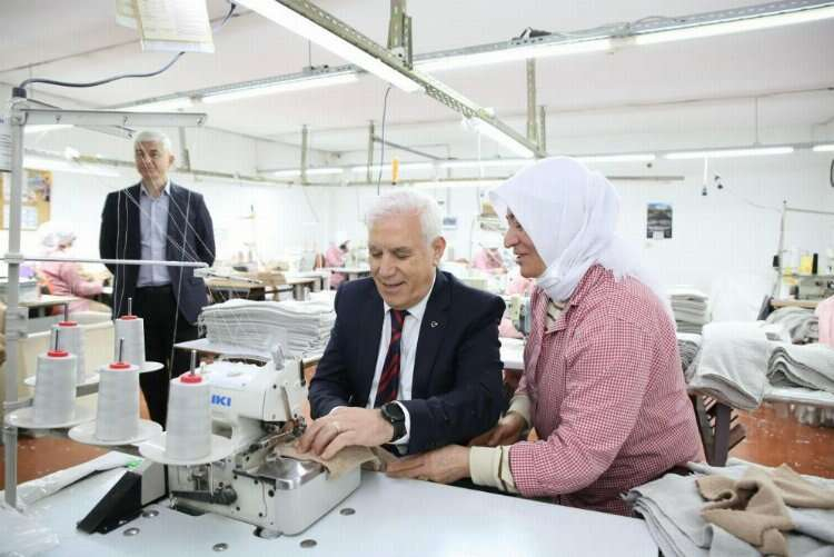 Cumhuriyet Halk Partisi (CHP) Bursa Büyükşehir Belediye Başkan Adayı Mustafa Bozbey, Referans Holding, Minteks ve Yeşim Tekstil bünyesinde çalışan emekçi kadınları ziyaret etti. 8 Mart Dünya Kadınlar Günü etkinlikleri çerçevesinde konfeksiyon atölyesine inen Başkan Adayı Bozbey, kadın çalışanların tek tek gününü kutlayarak hediyelerini takdim etti.