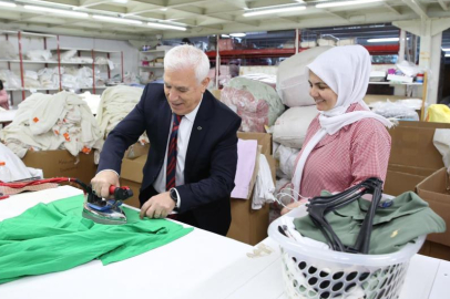 Kadın çalışanlarla sohbet ederek, dikiş makinasına da geçen Bozbey’in bornoz kuşağı dikim çalışması da renkli anlara sahne oldu. Tek bir günde değil, tüm yaşam boyunca eşit ve adil bir sistemde kadın haklarının her zaman savunulması gerektiğini vurgulayan Bozbey, “Kadınların güçlü ve güvende hissedecekleri bir kentte, hep birlikte gülümseyerek yaşayacağımız günler çok yakın.” dedi.