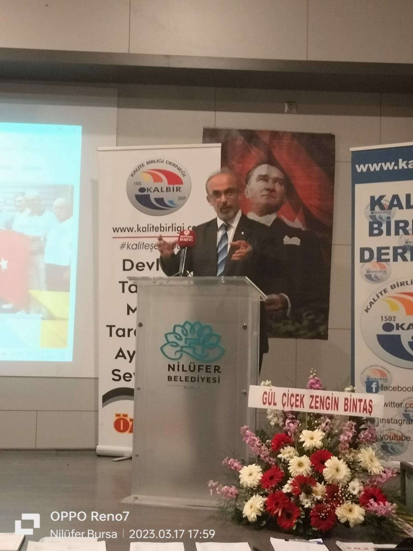 Bursa Ticaret Borsası Başkan Vekili Ibrahim özhan yapmış olduğu konuşmada kalitesizlik maliyetlerine dikkat çekerek, ülkemizde yaşanan deprem felaketinin bir daha yaşanmaması için toplu bir kalite seferberliği başlatılması gerektiğini ve bu alanda Kalite Birliği'nin yapmış olduğu çalışmaları desteklediklerini ve takdir ettiklerini ifade etti.