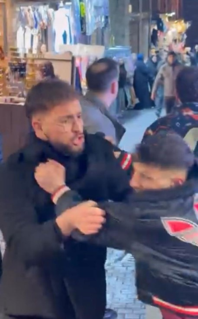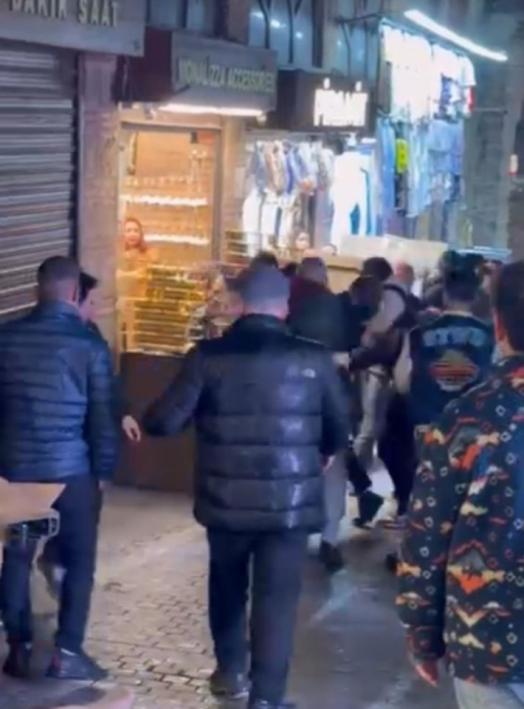 Bursa’da tarihi çarşıda iki grup arasında çıkan kavga, adeta meydan muharebesine döndü. Yumrukların havada uçuştuğu anlar saniye saniye kameraya yansırken, panik yaşayan vatandaşlar olay yerinden uzaklaşmaya çalıştı.