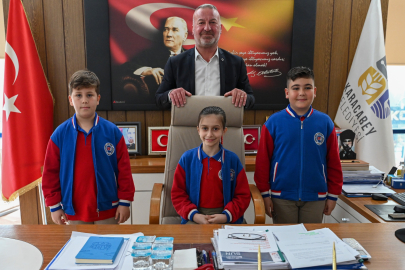 Karacabey Belediye Başkanı Fatih Karabatı, 23 Nisan Ulusal Egemenlik ve Çocuk Bayramı kapsamında koltuğunu Atatürk İlkokulu öğrencilerine devretti. Bayram coşkusunu doyasıya yaşayan öğrenciler, temsili olarak Belediye Başkanı sıfatıyla çeşitli taleplerde bulundu. Atatürk İlkokulu Müdürü Hikmet Ulga, Müdür Yardımcısı Cengiz Bektaş, Sınıf Öğretmeni Ömer Uyar ve 4. sınıf öğrencileri, 23 Nisan dolayısıyla Belediye Başkanı Fatih Karabatı'yı makamında ziyaret etti. Öğrencilerle yakından ilgilenen Başkan Karabatı, başkanlık koltuğunu Ayşenaz Çelebi’ye devretti. Ziyarette Aras Efe Uçkan ve Ayaz Recep Erdoğan isimli öğrenciler de yer aldı. Temsili olarak Belediye Başkanlığı koltuğuna oturan Ayşenaz Çelebi, telefonla bağlandığı Belediye Başkan Yardımcısı Bora Akın’a taleplerini iletti. İlk olarak Atatürk Kültür Parkı’nda yer alan yüzme havuzunun tüm yıl hizmet vermesini isteyen minik Başkan Ayşenaz Çelebi, çocukların oyun ihtiyaçlarını karşılamak için çocuk parkı bulunmayan mahallelerde trafik düzenlemeleri yapılarak ve belirlenen sokakların özellikle 15.30 – 17.00 saatleri arasında trafiğe kapatılıp çocuk oyun alanlarına dönüştürülmesi talimatını verdi.