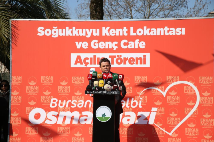 Yoğun katılım ile yeni Kent Lokantası ve Genç Kafe'ye kapılarını açtıklarını belirten Osmangazi Belediye Başkanı Erkan Aydın, yerin teminiyle ilgili birçok prosedürle uğraştıklarını belirtti. Aydın, "Gerçekten yerin teminiyle ilgili birtakım prosedürler için bayağı uğraştık. Birkaç kez Ankara'ya gitmek zorunda kaldık. Ama çok şükür, muhtarımız ve heyeti seçimden sonra hayırlı olsun ziyaretine geldiklerinde söz verdiğimiz gibi bugün de açılışını yapıyoruz" diye belirtti.