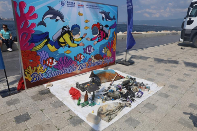 Bursa Büyükşehir Belediyesi’nin 26-29 Mayıs tarihleri arasında gerçekleştirdiği ‘Çevre Haftası Şenliği’, kentin dört bir yanındaki etkinliklerle devam ediyor. Etkinlikler kapsamında Park ve Bahçeler Dairesi Başkanlığı Sahil Planlama ve Yapım Şube Müdürlüğü tarafından Gemlik’te dalgıçlarla deniz dibi temizliği yapıldı. İskeledeki hazırlıkların ardından Espadon Dalış Merkezi’nin gönüllü dalgıçları, dalış gerçekleştirip deniz dibindeki kirliliği gözler önüne serdi. Dalgıçların, Gemlik Körfezi dibinden topladıkları plastik ve cam şişeler, metal ve ambalaj atıklar, oyuncaklar ve mutfak eşyaları, vatandaşların görmesi adına iskelede sergilendi.