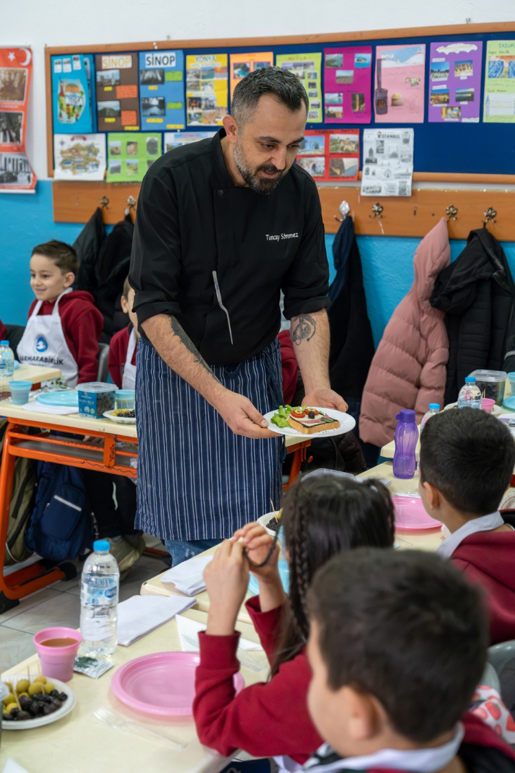 Marmarabirlik, sağlıklı nesiller yetiştirme vizyonu doğrultusunda hayata geçirdiği 'Minik Şeflerle Zeytinli Tarifler' projesiyle çocukları üretimin ve bilinçli beslenmenin merkezine taşıyor. Projenin ikinci durağı Gemlik Umurbey Abdullah Fehmi İlköğretim Okulu oldu.