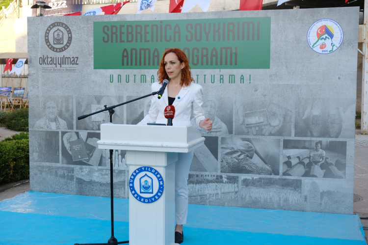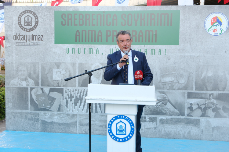 Etkinlikte konuşan Yıldırım Belediye Başkanı Oktay Yılmaz, Srebrenitsa'dan Gazze'ye uzanan ortak adalet arayışına dikkat çekerek, soykırım acısının sadece Bosna'ya değil, tüm insanlığa ait bir utanç olduğunu vurguladı. Kısa bir süre önce Bosna'yı ziyaret ettiğini ve Srebrenitsa anneleriyle bir araya geldiğini belirten Başkan Yılmaz, dünyanın farklı coğrafyalarındaki mazlumları unutmamak gerektiğini ifade etti. Yılmaz, " Mavi kelebeklerin izini süren hafızaların çocukları olarak, toprağın altına gömülen çığlığı unutmuyor ve unutturmuyoruz. Bilge Kral Aliya’nın o tarihi uyarısını bir kez daha hatırlıyoruz: ‘Unutulan soykırım tekrarlanır.’ Bazen Srebrenitsa’da, bazen Gazze’de, bazen Doğu Türkistan’da yaşanan acılara şahit oluyoruz. Ve biliyoruz ki Türkiye, sadece kendi sınırlarını değil; mazlumun vicdanını, insanlığın onurunu da korumakla mükelleftir. Zulmün küreselleştiği bir dünyada, merhameti de küreselleştirmek zorundayız. Bu, tarihin değil; vicdanın yüklediği bir sorumluluktur." İfadelerini kullandı.