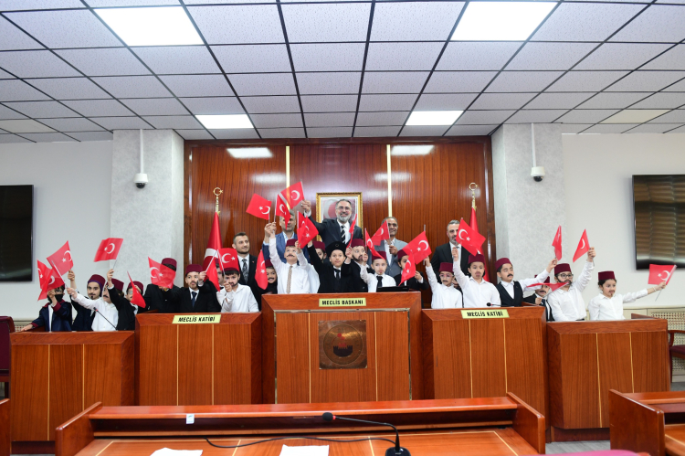 Kestel Belediye Başkanı Ferhat Erol, 23 Nisan Ulusal Egemenlik ve Çocuk Bayramı münasebetiyle Musa Amca İlkokulu öğrencileriyle bir araya geldi. Programda minikler, Türkiye Büyük Millet Meclisi’nin açılışını canlandırarak bayram coşkusunu meclis salonuna taşıdı.