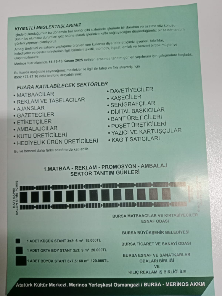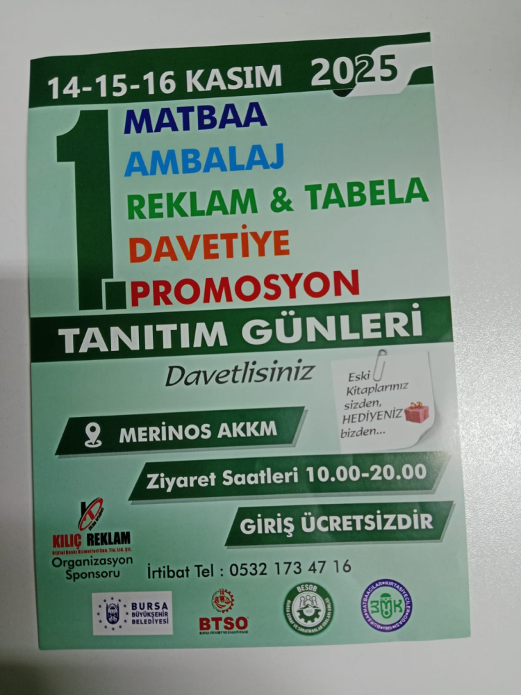 YeniDönem Gazetesi Genel Yayın Yönetmeni Burhan Kaya’yı gazetede ziyaret eden Erol, Bursa Merinos Atatürk Kongre ve Kültür Merkezi Fuar ve Fuaye alanında 14-15-16 Kasım 2025 tarihlerinde düzenlenecek olan “1. Matbaa Ambalaj Reklam Tabela Promosyon Davetiye Tanıtım Günleri” hakkında bilgi verdi.