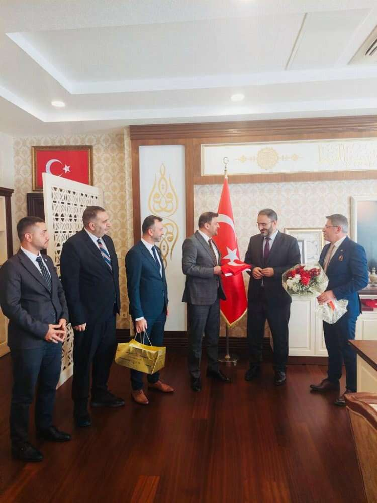 Milliyetçi Hareket Partisi Bursa İl Başkanı Muhammet Tekin, İl Başkan Yardımcı M. Özgün Güneş, Türk Diyanet Vakıf-Sen Genel Başkan Yardımcısı Hilmi Şanlı, Bursa Şube Başkanı Eyüp Bulut ve İl Müftülüğü İş Yeri Temsilcisi Hasan Altay’dan oluşan heyet Bursa İl Müftüsü Yavuz Selim Karabayır’ı makamında ziyaret etti.