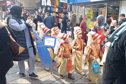 Bursa'da özel bir anaokulun öğrencileri tarihi hanlar bölgesi ve kapalı çarşıda yeniçeri kostümü ile Ramazan'ı karşıladı.