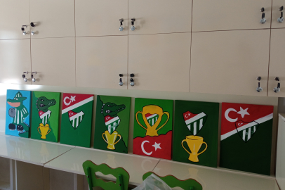 Tophane ilkokulu ve Reşitpaşa ilkokulu öğrencilerinin hayal güçlerini ve Bursaspor sevgilerini birleştirdiği bu eserler arasında, şampiyonluk temalı resimler dikkat çekti.