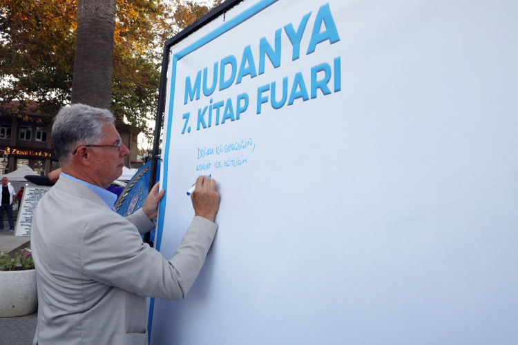Adalet temasıyla başlayan Mudanya 7. Kitap Fuarı’nın kitapların, fikirlerin ve özgür düşüncenin buluştuğu bir fuar olacağını söyleyen Bursa Büyükşehir Belediye Başkanı Mustafa Bozbey, “Kitaplarla geleceğe umutla bakan, özgürce düşünen, adalet arayışından vazgeçmeyen bir toplumun imzasını atıyoruz” dedi. Emek veren herkese teşekkür eden Bozbey, tüm Bursalıları ve Bursa’ya gelen ziyaretçileri kitap fuarının eşsiz atmosferini yaşamaya ve kitapların dünyasında yeni ufuklar keşfetmeye davet etti.
