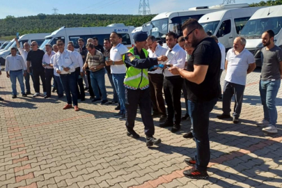 Trafik ekipleri tarafından Bademli Mahallesi'nde bulunan okul servis sürücülerine yönelik 'Okul Servis Araçları Hizmet Yönetmeliğ'inde belirtilen ve güvenli servis kullanımı ile ilgili bilgilendirmeler yapılarak eğitici broşürler dağıtıldı.