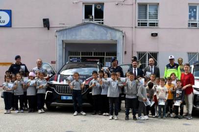 Etkinlik kapsamında öğrencilere çeşitli bilgilendirici materyaller dağıtılırken, İlçe Jandarma Komutanlığı'nın envanterindeki yerli ve milli otomobil Togg da öğrencilerin ilgisini çekti. Minikler, Togg ile hatıra fotoğrafları çektirerek keyifli anlar yaşadı.