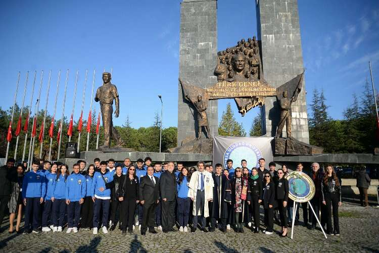 Tören BUÜ Rektörü Prof. Dr. Ferudun Yılmaz’ın öğrencilerle birlikte anıta çelenk koymasıyla başladı.