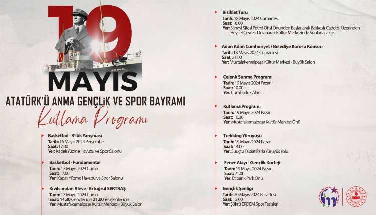 Mustafakemalpaşa'da 19 Mayıs Bayramı kutlamaları, konser, çelenk sunma töreni, Fener Alayı Gençlik Korteji ve DJ performansı ile renklenecek. Belediye Başkanı Şükrü Erdem, gençlere özel etkinliklerle dopdolu bir kutlama programı olduğunu belirtti. Gençlik Şöleni ile bayramın taçlanacağı program, 20 Mayıs'ta Şükrü Erdem Spor Tesislerinde gerçekleşecek.