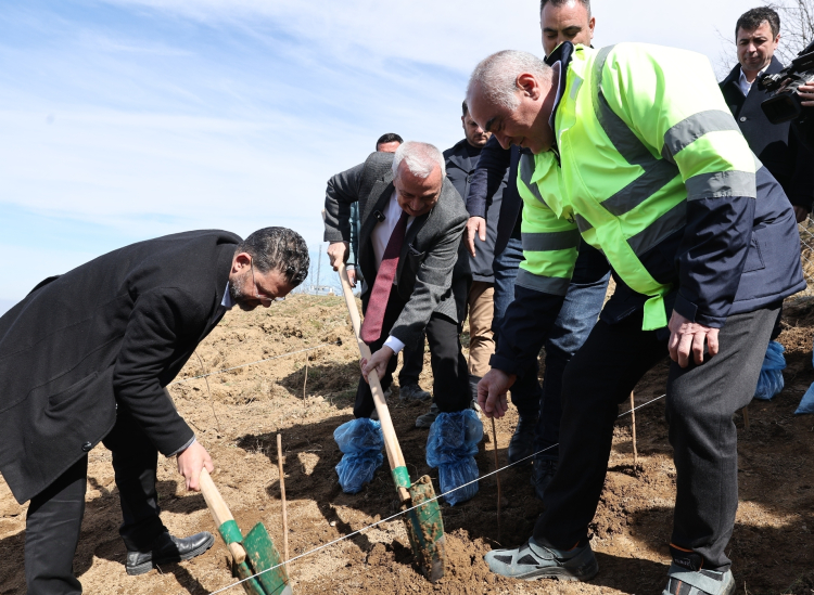 Konuşmaların ardından Nilüfer Belediye Başkanı Şadi Özdemir ve diğer katılımcılar, ekim yapılacak alanda ahududu fidanlarını toprakla buluşturdu.