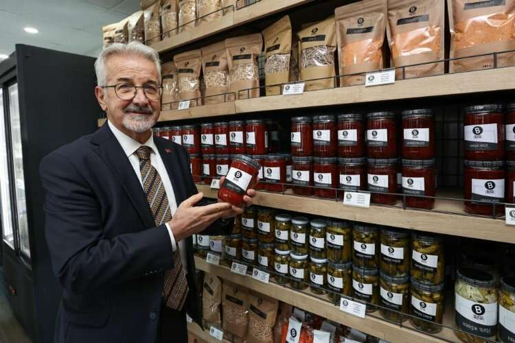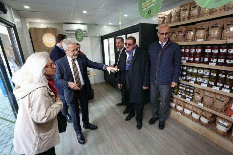 Nilüfer Belediyesi olarak ekolojik tarımı desteklediklerini, hibrit tohumlarla genetiği değiştirilmiş sebzeler yerine, ata tohumlarıyla üretimi yaygınlaştırmaya çaba gösterdiklerinin altını çizen Başkan Erdem, “Hiçbir zirai ilaç kullanmadan üretim yapıyoruz ve kendi ürettiğimiz meyveyi, sebzeyi, tahılı kullanarak erişte, salça, reçel gibi başka ürünler üretiyoruz. Bu üretimler, Nilüfer’deki kadın dernekleri tarafından Hasanağa Gıda Merkezi’mizde ve gıda mühendislerimizin denetiminde yani hijyenik şartlarda yapılıyor. Yine Nilüfer Bostan markamızla ürettiğimiz yaklaşık 65 çeşit ürünü, burada satışa sunuyoruz. Nilüfer Bostan satış noktalarında toplam 180 çeşit ürün var. Bizim üretimlerimiz dışında, yurdun dört bir köşesinden gelen yöresine özgü doğal ürünler, kalitesiyle bilinen ürünler de burada tüketiciye ulaştırılıyor. Böylelikle kooperatifleşmeyi de destekliyoruz” diye konuştu.
