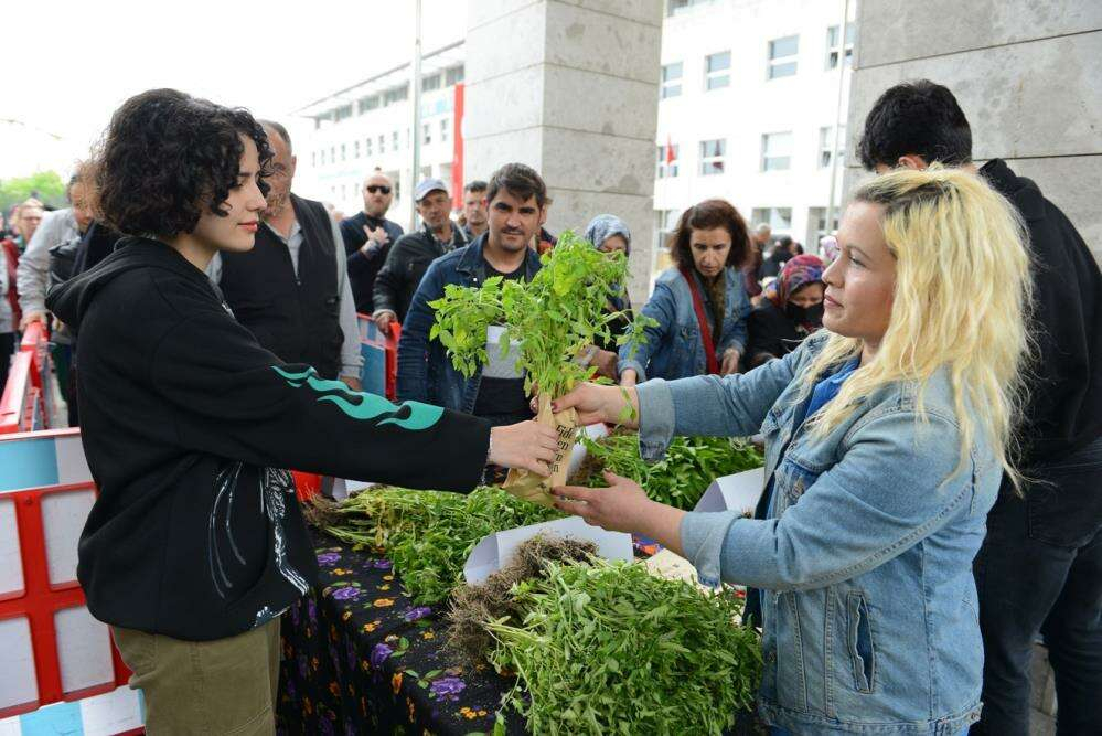Başkan Erdem, fideleri alan vatandaşlardan bir de ricada bulundu: “Sizden isteğim bu fideleri yetiştirince tohumlarını alıp gelecek yıl fide üretmek üzere saklamanız. Yerel tohumların geleceği taşınmasına sizin de katkınız olsun. Bugün burada biber, domates ve patlıcanın farklı türlerinden fideleri vatandaşlarımıza dağıtıyoruz. Arzu ettiklerinizden alıp, toprakla buluşturun; çocuklarınızla, torunlarınızla birlikte ürün yetiştirmenin keyfine varın ve onlar da sebzeyi dalından toplamanın tadını alsın” dedi.