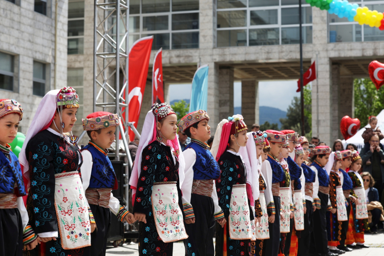 Nilüfer’de sabah saatlerinde Atatürk Anıtı’na sunulan çelenk töreninin ardından bayram coşkusu, öğle saatlerinde Cumhuriyet Meydanı’na taşındı. Programda meydan, çocukların neşesi ve heyecanıyla doldu.