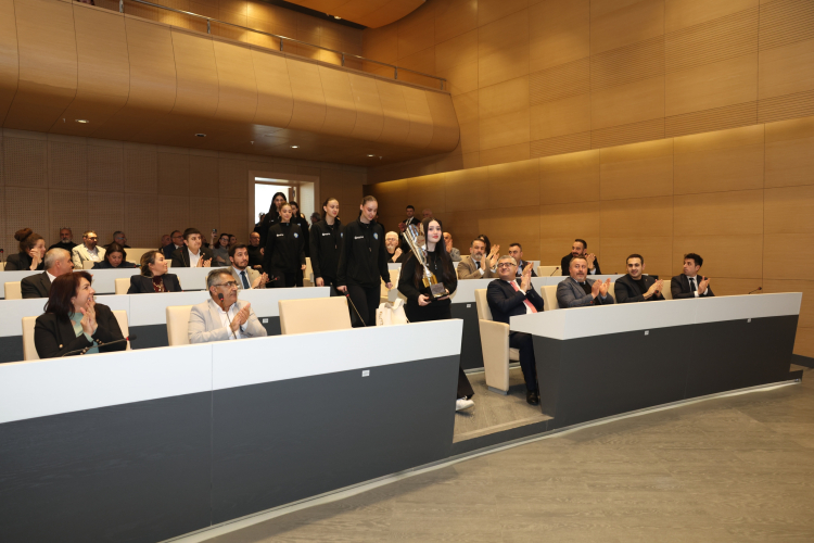 Nilüfer Belediyespor’un yöneticileri, teknik ekip ve genç sporcular, bu başarılarını Nilüfer Barış Meclisi’ne taşıdı. Nilüfer Belediyesi Mart Ayı Olağan Toplantısı’nda başarılarını paylaşan ekip, meclis üyelerinin alkışları eşliğinde salona girdi. Genç sporcular, daha sonra kazandıkları kupayı Başkan Şadi Özdemir’e takdim ettiler. Başkan Şadi Özdemir de kupayı tüm meclis adına teslim aldı.