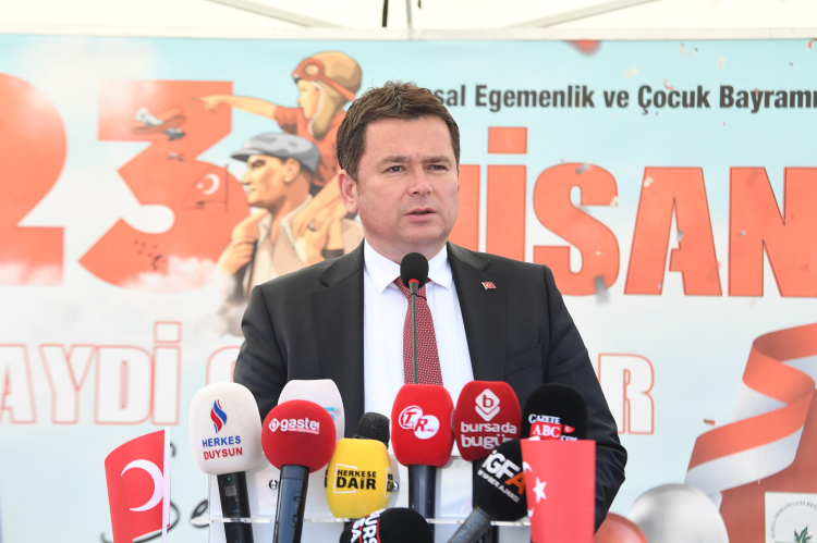 23 Nisan’ın dünyadaki tek çocuk bayramı olduğunu ifade eden Osmangazi Belediye Başkanı Erkan Aydın, “Büyük Önder Atatürk’ün çocuklarımıza yani gençlerimize armağan ettiği bir bayram, bütün yurtta bugün coşkuyla kutlanıyor. Umarım ilelebet bu coşkuyla kutlanmaya devam edecek. Bu vizyonu iyi anlamak lazım 23 Nisan’ı çocuklara 19 Mayıs’ı gençlere Cumhuriyeti de yeni nesillere yani gençlere emanet etmiş bir lider 105 yıl önce kurduğu Türkiye Büyük Millet Meclisiyle Egemenliği saraydan alıp Türkiye Büyük Millet Meclisine yani halka devretmiş, bu sayede de her türlü kararı kurtuluş savaşı devam ederekken alınan bütün kararları bu yönüyle savaşın meclisten idare edildiği emperyalizme karşı kazanılan en büyük savaşlardan biri olan Kurtuluş Savaşını da millet iradesinin tecelli ettiği Türkiye Büyük Millet Meclisi’nden yapmış bu niye önemli eğer o gün bu vizyonu koymasaydı. Sınırlarımızın hemen yanı başında Irak, Suriye, Libya ve Mısır’da yaşananlara 20-25 yıldır şahidiz. Paramparça olmuş ülkeler milyonlarca insan ölmüş milyonlarcası da göç etmiş anavatanlarını terk etmek durumunda kalmışlar, büyük önder bize öyle bir miras bırakmış öyle bir vizyon çizmiş ki bütün geleceği çocuklara emanet etmiş ki çok şükür 100 yıldır ayaktayız. Bundan sonrada onun dediği gibi Türkiye Cumhuriyeti ilelebet payidar kalacaktır” dedi.