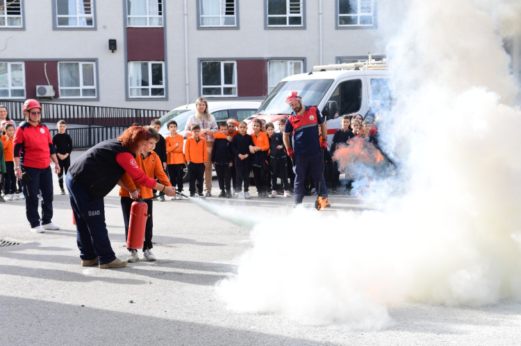 Eğitimin en dikkat çekici bölümü ise okul bahçesinde gerçekleştirilen deprem ve yangın tatbikatları oldu. Gerçeğini aratmayan bir senaryoyla yürütülen tatbikatlarda öğrenciler, öğrendiklerini uygulama şansı bularak kriz anında koordineli hareket etmenin önemini deneyimledi. Tatbikat boyunca miniklerin ciddiyeti ve özverisi programın amacına ulaştığını bir kez daha gösterdi.