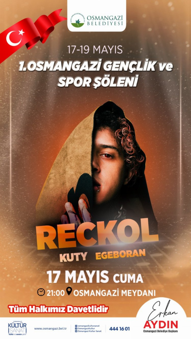 Osmangazi Belediyesi, tüm Bursalıların 19 Mayıs Atatürk'ü Anma, Gençlik ve Spor Bayramı'nı dolu dolu kutlaması adına 17-19 Mayıs tarihleri arasında Osmangazi Gençlik ve Spor Şöleni ile bir dizi etkinlik programı hazırladı. Gençlerin 19 Mayıs'ı sporla geçirmesi adına Osmangazi Meydanı'nda Atatürk ve Gençlik Sokak Basketbolu Turnuvası ve masa tenisi turnuvası gibi sportif etkinlikler düzenleyen Osmangazi Belediyesi, gerçekleştirilecek canlı langırt, rodeo parkuru ve müzik yayını ile de eğlenceyi tüm güne yayacak. 17 Mayıs Cuma günü gösteri maçı ile başlayacak olan sokak turnuvasına 13-14 ve 15-18 yaş aralığındaki sporcular katılabilecek. 18 Mayıs Cumartesi günü grup karşılaşmaları ile devam edecek olan sokak basketbolu turnuvası, 19 Mayıs Pazar günü sıralama maçları ve kupa töreni ile son bulacak. 17 Mayıs Cuma akşamı Osmangazi Meydanı'nda sahne alacak olan Reckol, Kuty ve Egeboran da Osmangazili gençler için konser verecek.