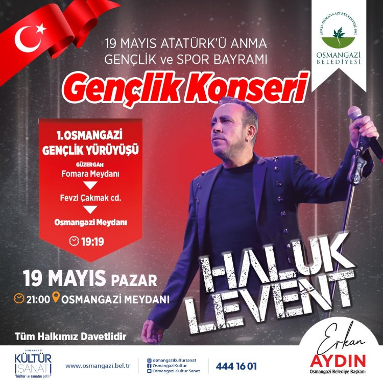Osmangazi Belediyesi, 19 Mayıs Atatürk'ü Anma, Gençlik ve Spor Bayramı coşkusunu Osmangazi'nin caddelerine taşımak adına binlerce Bursalının katılımıyla yürüyüş düzenleyecek. Yürüyüş 19 Mayıs Pazar günü saat 19.19'da Fomara Meydanı'nda başlayacak. Ellerinde Türk bayrakları ile yürüyüşe katılanlar şarkılar ve marşlar eşliğinde Fevzi Çakmak Caddesi üzerinden Osmangazi Meydanı'na yürüyecek.