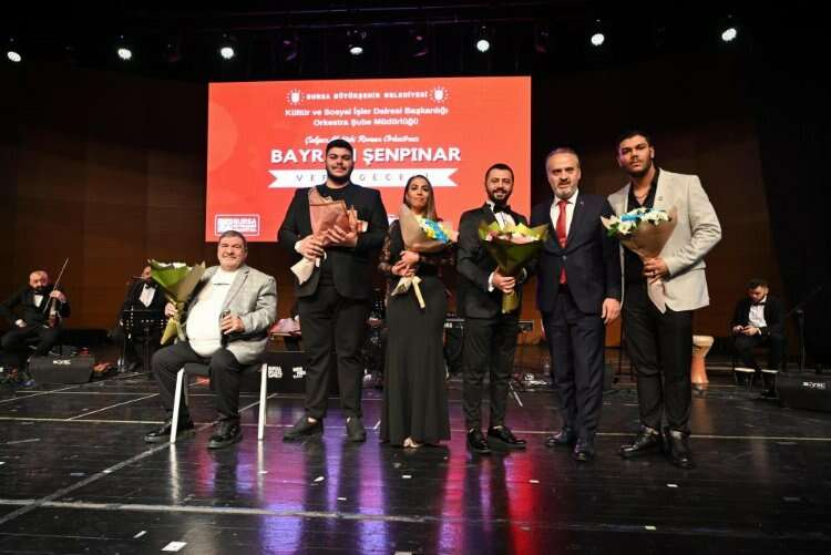 Söz ve müzikleri usta sanatçıya ait olan eserlerin seslendirildiği gecede, Devran Şengümüş, Burak Çideman, Esra Erduvan ve Bayro Şenpınar sahne alarak dinleyenlere keyifli bir akşam yaşattı. Müzik severlerin yoğun ilgi gösterdiği konserde, Karagöz Halk Dansları Topluluğu’nun da sahne alarak Bursalılara çoşku dolu anlar yaşattı. Konserin son bölümünde ise usta sanatçı Bayram Şenpınar sahne alarak ‘Koca Çınar’ adlı eserini sevenleri için seslendirdi.