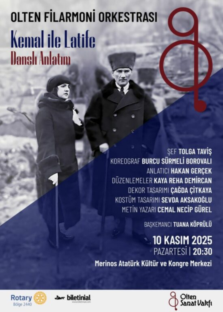 Bursalı sanatseverler, 10 Kasım Pazartesi günü saat 20.30'da klasik müzik ve balenin sentezi olan “Kemal ile Latife” adlı danslı anlatımını ilk kez izleme fırsatı bulacak. Atatürk’ün vatan sevgisiyle dolu yüreğinin hikayesini sanat dolu bir performansla aktaracak konser, Tolga Taviş yönetimindeki Olten Filarmoni Orkestrası, İzmir Devlet Opera ve Bale sanatçıları ve Olten Çocuk Korosu’nun ortak çalışmasıyla sahnelenecek. Performansın koreografisi Burcu Sürmeli Borovalı’ya ait olurken, metin yazarı Cemal Necip Gürel’in hazırladığı eser, metni Hakan Gerçek seslendirecek.
