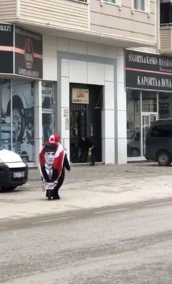 Bursa'da 80 yaşındaki Ayşe Nine; Çanakkale Şehitlerini anmak için sırtına astığı Türk Bayrağı ve Atatürk Posteri ile oturduğu semtin bir başından diğer başına yürüdü.
