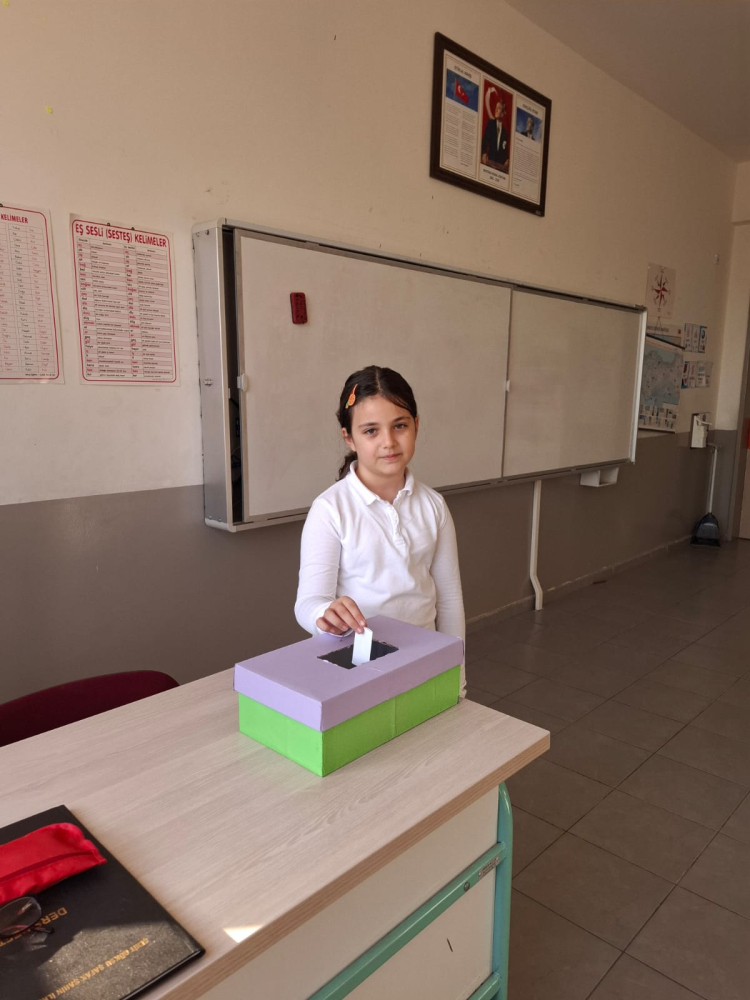 Bursa’nın Osmangazi İlçesi Hamitler mahallesinde eğitim öğretim hizmeti veren Şehit Göksu Şafak Şahin İlkokulu 4/B sınıfı öğrencisi Beril Küçükkaya, sınıf başkanı seçilmesi halinde Cumhurbaşkanı Recep Tayyip Erdoğan’ı sınıfa ve okula davet edeceğini vaat etti.
