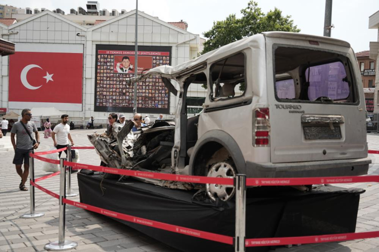 Tankın ezdiği araç 15 Temmuz Demokrasi Meydanı'nda sergileniyor
