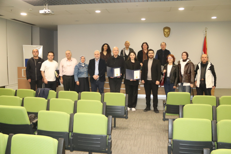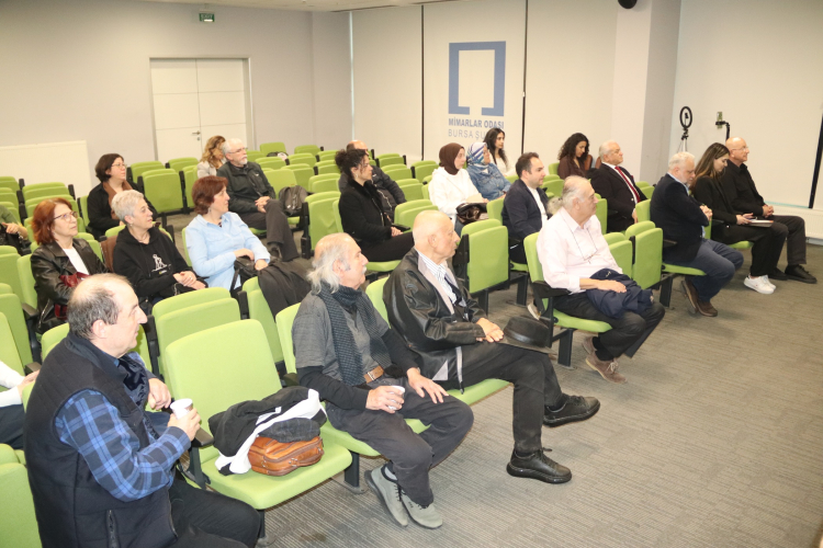 Konuşmalarından ardından Mimar M. Fatih Aydın, MSGSÜ Mimarlık Bölümü Öğretim Üyesi Prof. Dr. Oğuz Ceylân’a, Mimarlar Odası Bursa Şubesi Yönetim Kurulu Üyesi Kurtuluş Göktaş da Yüksek Mimar Deniz Ezgi Ünlü’ye etkinliğe katılımlarından dolayı teşekkür belgesi takdim etti.