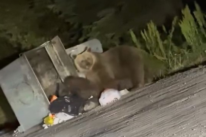 Türkiye’nin önemli turizm merkezlerinden biri olan Uludağ’da aç kalan ayı ailesi, çöp konteynerlerini karıştırarak yiyecek aradı.