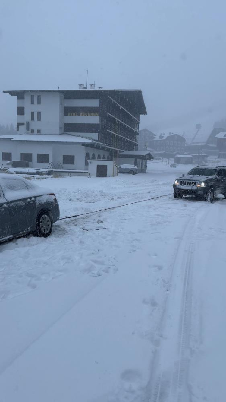 Kış lastiği ve zincirsiz Uludağ'a çıkan vatandaşlar kara saplanarak kurtarılmayı bekledi. Yolda kalanlara çevredeki vatandaşlar yardım etti.