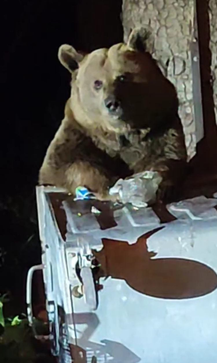 Türkiye'nin en önemli turizm merkezlerinden biri olan Uludağ'da aç kalan bir ayı, yerleşim alanlarına kadar indi. Çöp konteynerlerini karıştırarak yiyecek arayan ayı, vatandaşların cep telefonlarıyla kaydedildi.