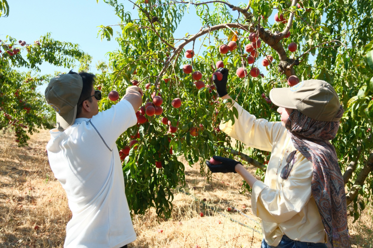 Bahçelerinde hasadın haziran ayında başlayıp eylül sonuna kadar sürdüğünü aktaran Ertürk, "4 ay şeftali hasat ediyoruz. Bu sezonun uzaması açısından, 4 ay boyunca taze ürün sağlanması açısından önemli" dedi. Prof. Dr. Ertürk, fakültede 15 Haziran'dan sonra staj programı başladığını anlatarak, şunları söyledi: "İkinci sınıf öğrencileri çiftlik stajı yapıyor. 9 bölümün öğrencileri hasat ediyor. Eylül sonuna kadar sürüyor. Öğrenciler nektarin ve şeftali çeşitlerini tanıyorlar. Şeftalide ne var hasadı nasıl yapılıyor görmüş oluyorlar. Bitki koruma öğrencileri hastalık ve zararlılarını öğreniyorlar. Hem onların öğrenmesini sağlıyoruz hem üretim yaparak döner sermayeye katkı sağlıyoruz hem de üreticilere yol gösterici çalışmalar yürütüyoruz. Öğrenciler, koleksiyon bahçesinde okuldan sonraki hayatları için tecrübe kazanıyor."