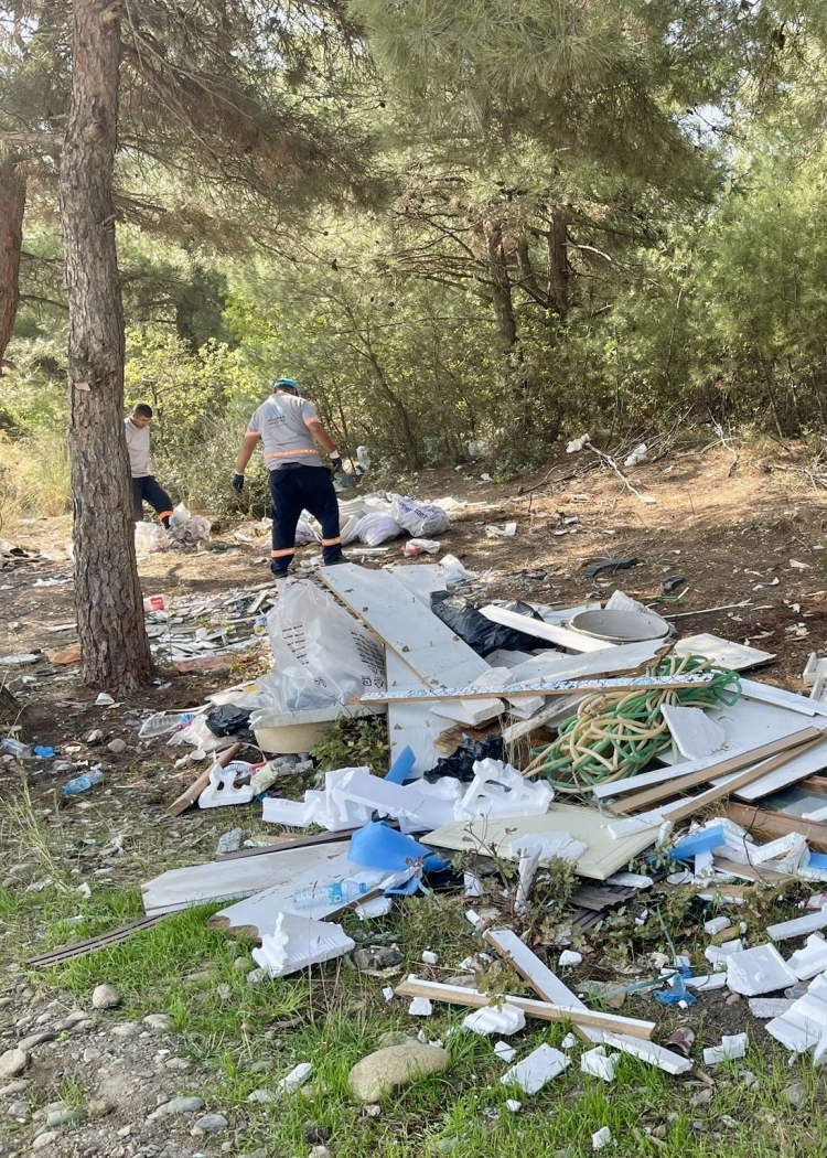 Nilüfer Belediyesi, Ürünlü Mahallesinde vatandaşları ihbarı ile gittiği bölgede, insanların doğaya attığı molozları kamyon kamyon temizledi.