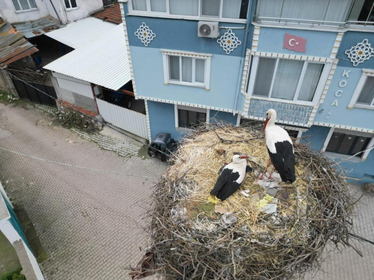 Adem Yılmaz ise Yaren'in 3 hafta erken geldiğini söyleyerek şöyle devam etti, "Yaren leylek sürpriz yaparak 3 hafta önceden geldi. Gelen ziyaretçi sayısı sürekli büyüdü. Haftasonları daha kalabalık oluyor. Yaren leylek ile eşi yuvasında. Sabah onları besliyorum" dedi.