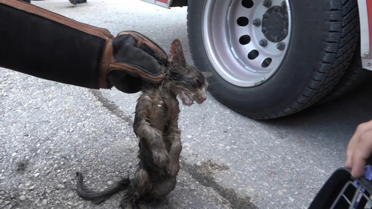 Yavru kedi Bursa'da 7 saatlik operasyonla kurtarıldı