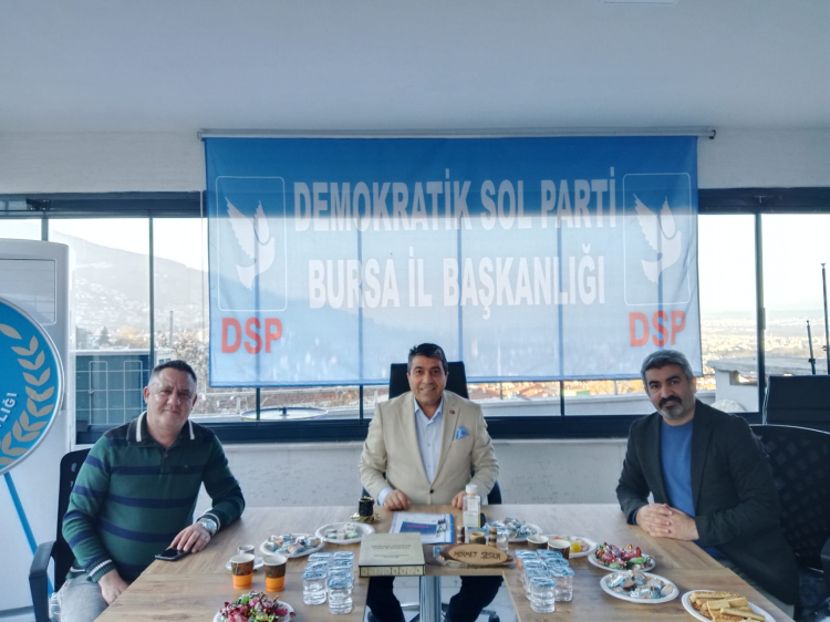 YeniDönem Gazetesi Genel Yayın Yönetmeni Burhan Kaya ile gazetenin köşe yazarı İlker Sakalar, Demokratik Sol Parti (DSP) Bursa İl Başkanlığı görevine kısa süre önce atanan Mehmet Seskır’a hayırlı olsun ziyaretinde bulundu.