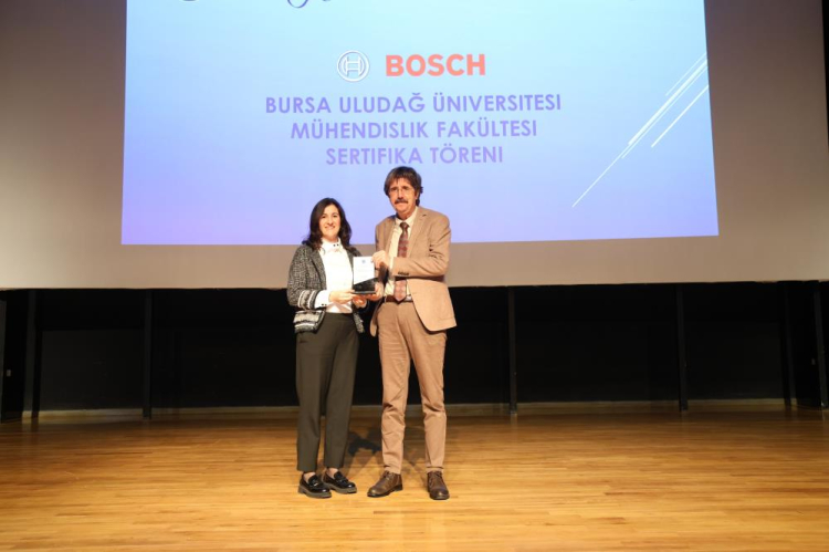 Prof. Dr. Mete Cengiz Kültür Merkezi’nde gerçekleştirilen törene BUÜ Rektörü Prof. Dr. Ferudun Yılmaz, Mühendislik Fakültesi Dekanı Prof. Dr. Adem Akpınar, Bosch İnsan Kaynakları Direktörü Aknur Ak, fakülte yöneticileri, akademisyenler ve öğrenciler katıldı.