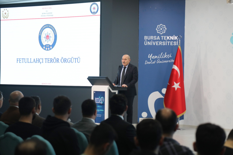 BTÜ Konuşmaları’nın konuğu olan Bursa İl Emniyet Müdürü Dr. Sabit Akın Zaimoğlu, “Dünyanın en tehlikeli terör örgütü FETÖ, 1,5 neslimizi, inançlı ve yetişmiş insanımızı elimizden aldı. 15 Temmuz hain darbe girişimiyle devleti ele geçirmeye çalıştılar. Bu nedenle 15 Temmuz bir kurutuluş savaşı ve başarı destanıdır” dedi.