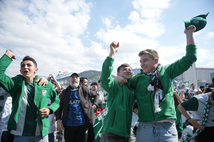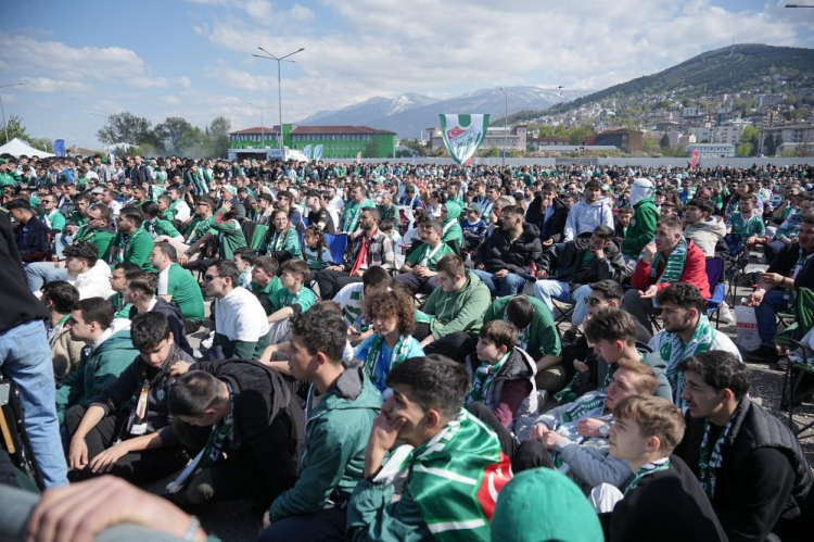 TFF 3. Lig'in 28. hafta mücadelesinde Bursaspor, Balıkesir'de Artvin Hopaspor ile karşı karşıya geldi. Maçın ilk yarısı 1-1 berabere tamamlanırken, yeşil-beyazlı ekip galip gelmesi durumunda şampiyonluğunu ilan edecek. Taraftarlar için Bursa'nın çeşitli yerlerine dev ekranlar kurulurken, Acemler İstasyonu Otoparkı'na kurulan dev ekranda da Bursalılar maçı takip etti. Şampiyonluk coşkusu ile ellerinde atkıyla alana gelenler maçın ikinci yarısını heyecanla bekliyor. Yüzlerce taraftarın oluşturduğu kalabalık dron ile havadan görüntülendi.