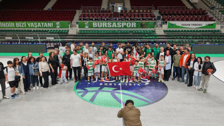 23 Nisan Ulusal Egemenlik ve Çocuk Bayramı kapsamında Bursaspor Basketbol Takımı, Büyükçekmece maçı öncesi altyapıdaki minik sporcularla TOFAŞ Spor Salonu'nda antrenman maçında karşı karşıya geldi. Parkede yaşanan mücadele, zaman zaman sert temposu ve sürpriz anlarıyla dikkat çekti.