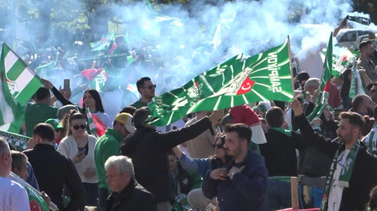 Millet Bahçesi ve Hüdavendigar Kent Parkı'nda toplanan Bursaspor taraftarları, maçı hep birlikte izleyerek şampiyonluk sevincini yaşadı. Maçın bitiş düdüğüyle birlikte ellerinde yeşil-beyaz bayraklarla meydanları dolduran taraftarlar, meşaleler yakarak şampiyonluğu kutladı.