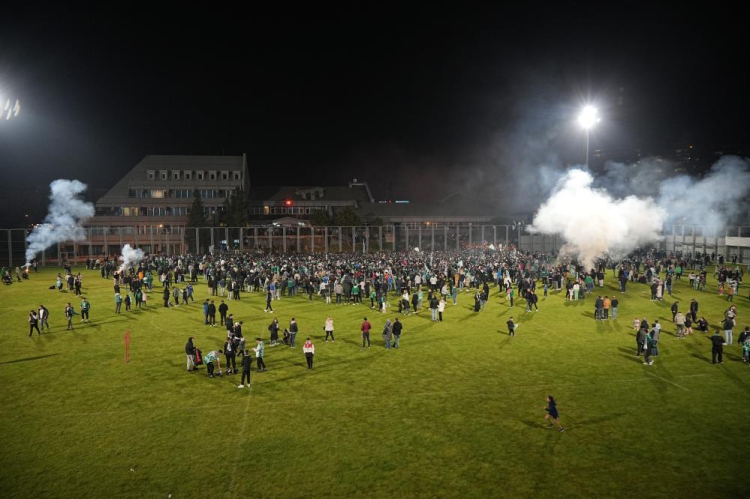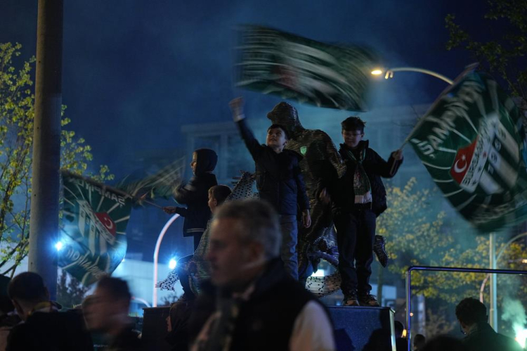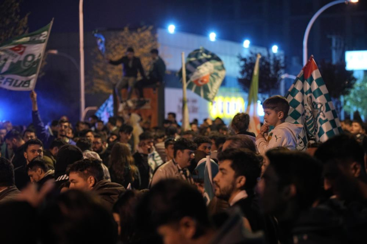 Deplasmanda Artin Hopaspor'u 2-1 mağlup edip lig bitimine 2 hafta kala şampiyonluğunu ilan eden Bursaspor maçın ardından Özlüce İbrahim Yazıcı Tesisleri'ne geldi. Yeşil-beyazlı taraftarlar takımı tesis etrafında meşaleler ve tezahüratlarla karşıladı. Yoğun ilgiyle karşılaşan takımın otobüsü kalabalıktan ilerleyemedi. Tesise çıkan kulüp yöneticileri, teknik heyet ve futbolcular, taraftarı el sallayarak selamladı. Besteler eşliğinde şampiyonluğu kutlayan takım ve taraftarlar eski teknik direktör Pablo Martin Batalla'ya da selam gönderdi.