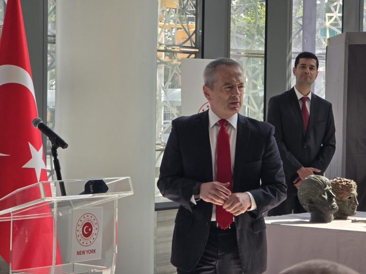 ABD'nin New York kentindeki Türkevi'nde Kültür ve Turizm Bakanlığı ile Manhattan Bölge Savcılığı’nın iş birliğiyle 14 tarihi eserin Türkiye’ye iadesine ilişkin tören gerçekleştirildi. New York Başkonsolosu Büyükelçi Muhittin Ahmet Yazal’ın ev sahipliğini yaptığı törene Manhattan Bölge Savcı Yardımcısı Albay Matthew McDonald, New York İç Güvenlik Soruşturmalarından Sorumlu Özel Ajan Yardımcısı Kevin O'Malley, Kültür ve Turizm Bakan Yardımcısı Gökhan Yazgı ile Türk ve Amerikalı sanatseverler katıldı. ABD'den Türkiye'ye iade edilen 14 eser arasında Burdur'daki Boubon Antik Kenti'nden bronz heykeller, Bizans dönemine ait gümüş sikkeler, 18. ve 19. yüzyıla ait 2 hançer ve çeşitli dönemlere ait pişmiş toprak kandiller yer aldı.